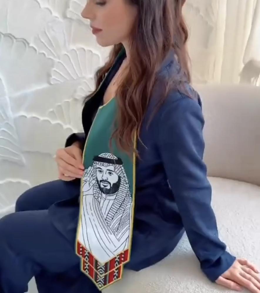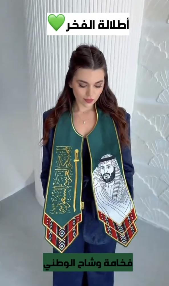وشاح أنيق بتصميم فاخر يحمل شعار المملكة واللون الأخضر رمز الوطن 💚